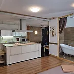 O apartamento Champetre Park View Studios em Riga oferece aos hóspedes terraço ensolarado e campo de ténis. Apartamento está localizado a 3.4 km de Parque de Uzvaras.